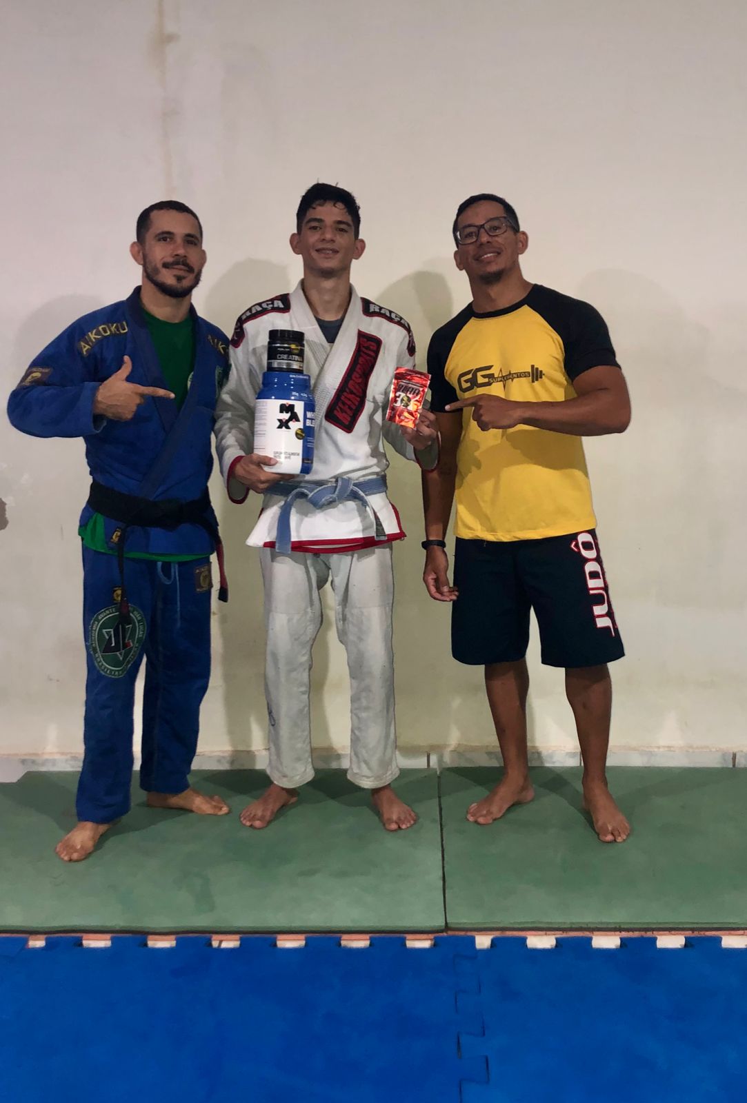 A rifa custa R$ 10,00 e tem como prêmio um kit de suplementos: 1 Whey Blend Max Titanium + uma Creatina + BCAA (doação da empresa GG Suplementos).