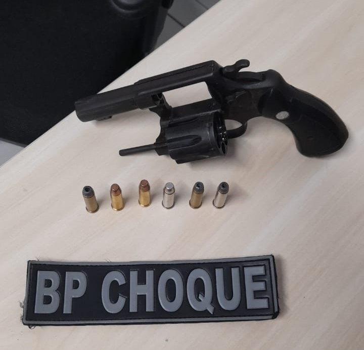 Por volta de 1h, os militares abordaram três homens suspeitos que estavam em um veículo, tipo GM/Monza, ocasião em que foi encontrado um revólver calibre 38 contendo seis munições intactas no interior do automóvel.