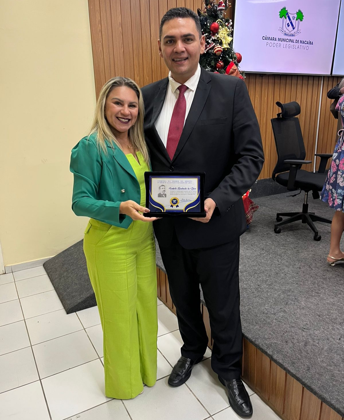 Em sessão solene realizada na noite desta sexta-feira, 14 de novembro de 2025, a Câmara Municipal de Macaíba concedeu a Comenda de Honra ao Mérito Jurídico Augusto Tavares de Lira ao advogado Dr. Humberto Franclaudio, em reconhecimento à sua destacada atuação no Direito Público e à contribuição jurídica prestada ao município.