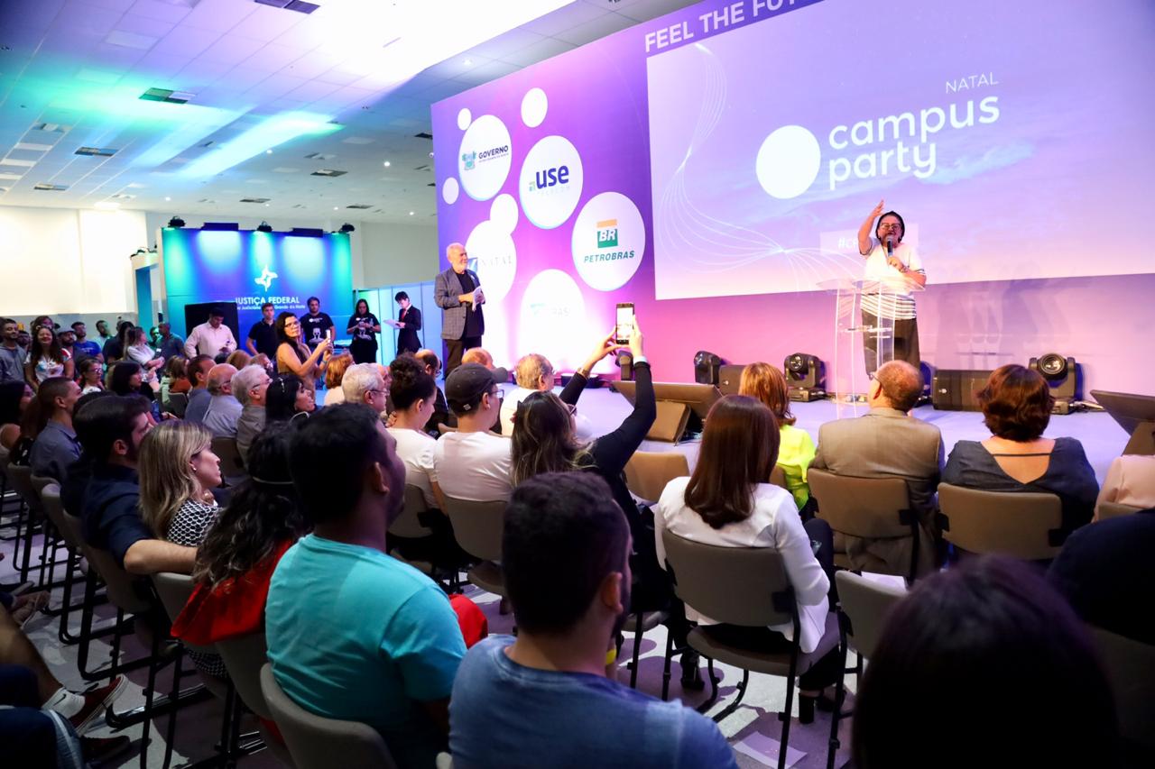 Foi dada a largada na segunda edição de um dos maiores eventos de tecnologia, inovação, empreendedorismo, robótica e cultura geek do mundo. A Campus Party reúne as maiores comunidades digitais numa maratona de conhecimento, networking e entretenimento. Durante a solenidade de abertura da CP Natal 2019, nesta sexta-feira (16), a governadora Fátima Bezerra destacou que um dos diferenciais desta edição será a capacitação dos servidores públicos estaduais “por meio do convênio com a Campus Party, estamos promovendo a atualização e a capacitação dos servidores públicos, especialmente àqueles ligados às áreas de tecnologia da informação, comunicação e recursos humanos. Eles serão multiplicadores de conhecimento e das novas ferramentas tecnológicas que estão sendo utilizadas pelo Governo para a modernização da gestão, aprimoramento de processos e procedimentos, trazendo mais produtividade e eficiência na gestão”, enfatizou Fátima.