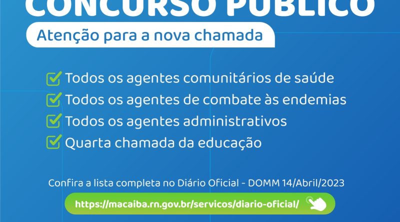 Read MoreTodos os agentes comunitários de saúde Todos os agentes de combate às endemias Todos os agentes administrativos Quarta chamada da