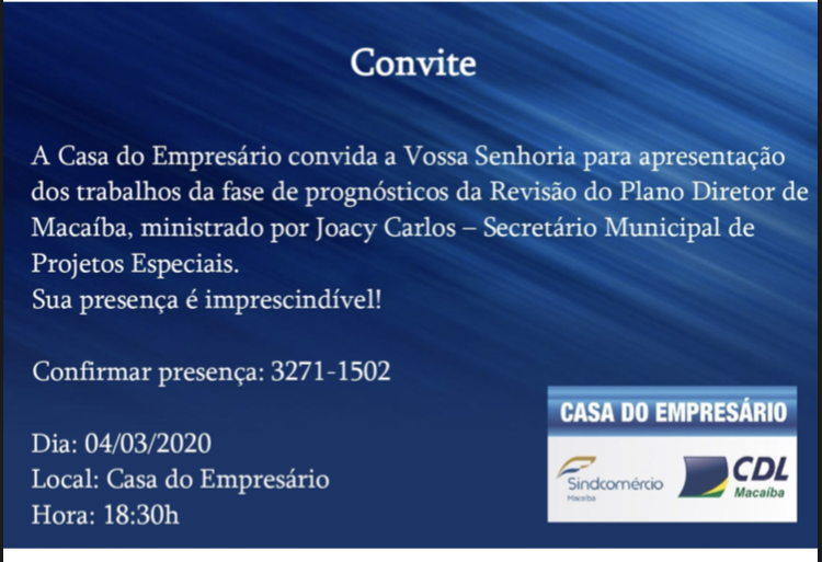 Venha conhecer as modificações do Plano Diretor de Macaíba que abrirá a Cidade para o desenvolvimento socioeconômico aliado a qualidade de vida dos munícipes.