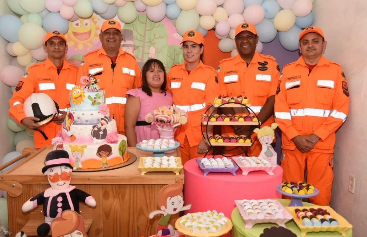 Anna Ruth da Cruz Medeiros, que completou oito anos no sábado (08), foi surpreendida em sua festa de aniversário por uma equipe do Corpo de Bombeiros Militar do Rio Grande do Norte. A festa da menina aconteceu às 18h do sábado, na rua Pastor José Morais n° 412, no bairro do Igapó, zona norte de Natal.