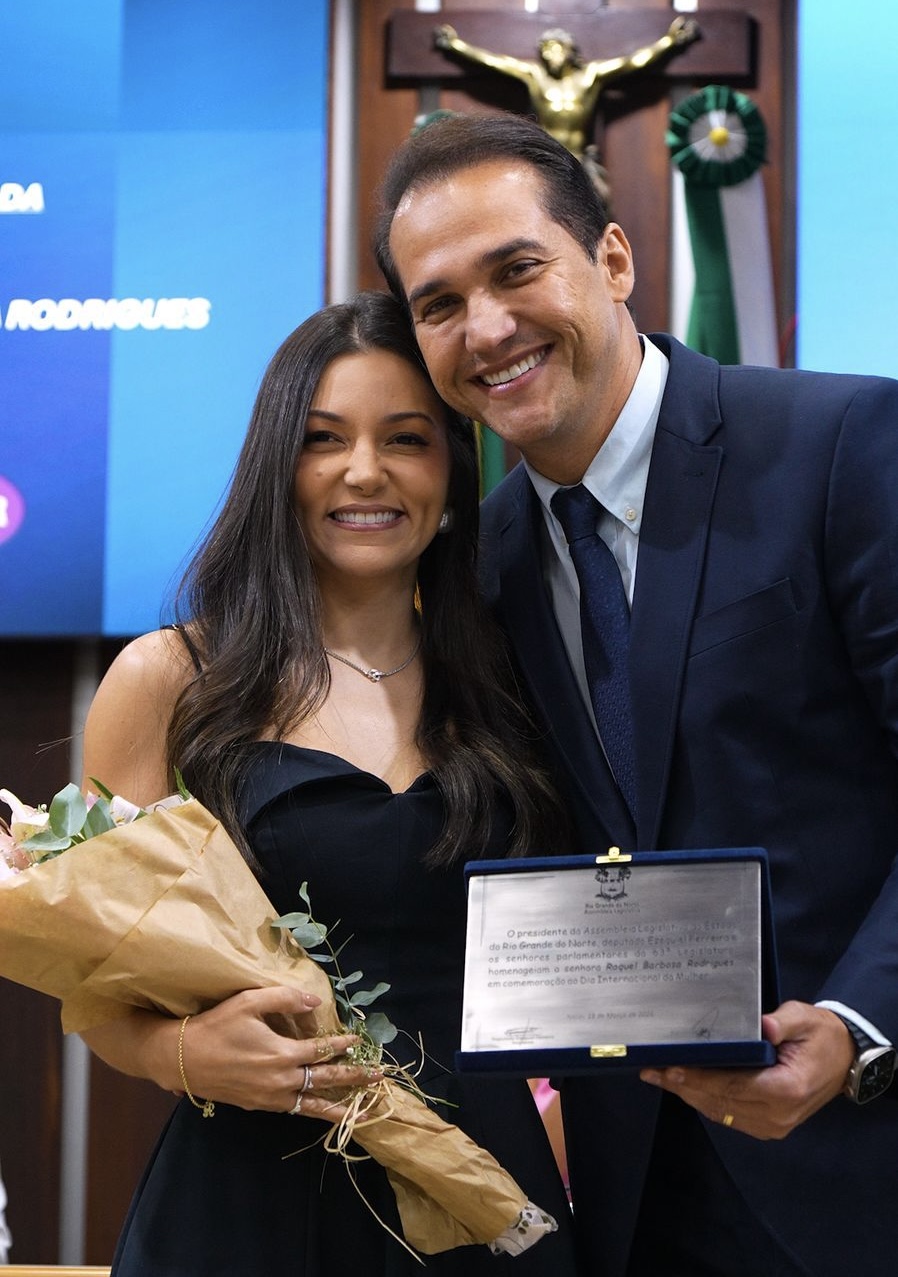 Entre os projetos citados pelo deputado que justificam a homenagem, estão a Patrulha Maria da Penha, que ganhou uma viatura exclusiva para atender ocorrências de violência doméstica, e a criação da Casa da Mulher, um espaço de acolhimento com suporte psicológico, jurídico e profissionalizante para vítimas de violência. “Raquel não está apenas fazendo história como primeira mulher a ocupar o cargo de vice-prefeita de Macaíba. Ela está mudando vidas com políticas públicas que fazem a diferença”, frisou Kleber.