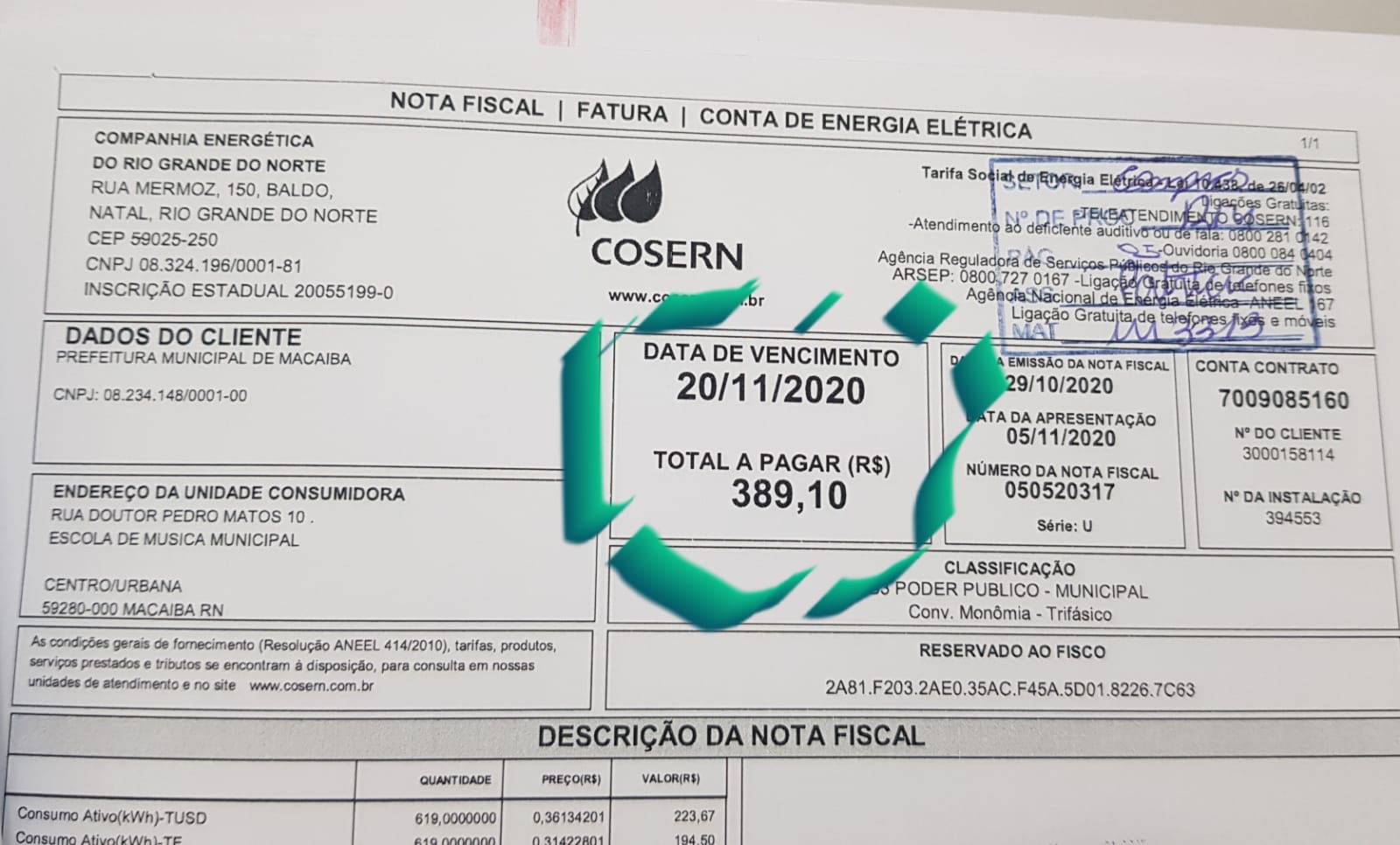 As contas vão chegando. A atual gestão de Macaíba realizou o pagamento de vários débitos de energia atrasadas da ex-gestão do prefeito Fernando Cunha. Contas de luz de R$ 8, 13, 60, 200, 350 e assim por diante foram quitadas, inclusive com multas. O blog teve acesso a alguns desses débitos deixados pela antiga administração, como mostra a imagem acima.