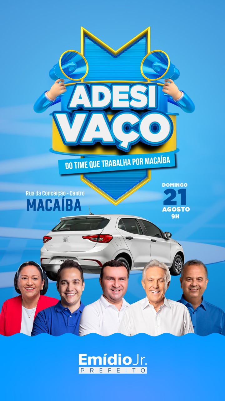 Domingo (21), a Rua da Conceição será palco de um grande adesivaço do time que trabalha por Macaíba formado pelos candidatos apoiados pelo prefeito Emídio Jr.