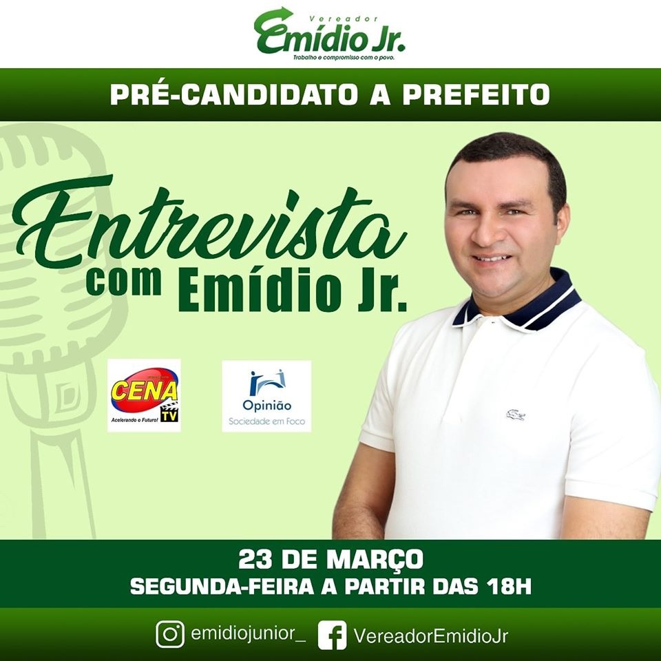 O advogado e pré-candidato a prefeito, Emídio Jr. será o entrevistado desta segunda-feira (23), do programa de debates Opinião Sociedade em Foco, transmitido ao vivo através das redes sociais da TV Cena. Na ocasião, o pré-candidato terá a oportunidade de expor suas ideias para Macaíba.