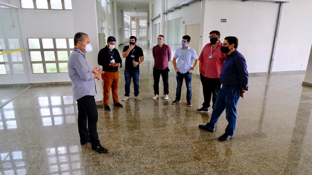 Um grupo com professores e pesquisadores do Rio Grande do Norte participou na tarde desta segunda-feira, 7, de uma visita técnica ao Parque Científico e Tecnológico do Rio Grande do Norte Augusto Severo (Pax). Guiados por Jovan Godioli, diretor do Instituto Santos Dumont (ISD), e por Júlio Rezende, diretor da Fapern, ambas instituições parceiras do projeto do Pax, os pesquisadores conheceram a edificação já existente na cidade de Macaíba, com área construída de 15 mil metros quadrados onde estão os primeiros espaços a serem ocupados. Em seguida, o grupo foi até a sede do ISD, distante menos de 500 metros do local.