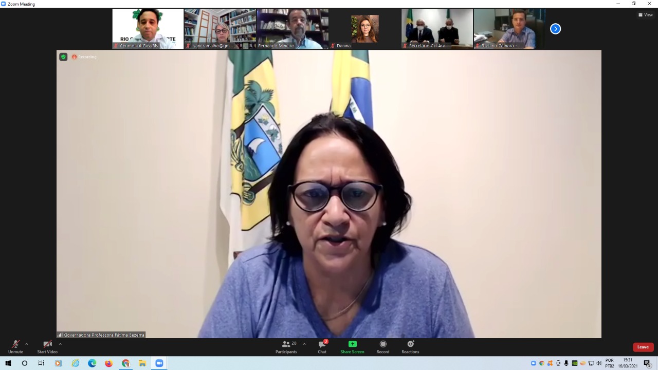O Governo do Estado vai analisar as propostas apresentadas pelos prefeitos do Rio Grande do Norte antes de editar um novo decreto com medidas restritivas para barrar a propagação do coronavírus. A decisão foi acertada durante reunião virtual, na tarde desta terça-feira (16), que durou duas horas e meia. Alteração no horário de vigência do toque de recolher é uma das sugestões apresentadas.