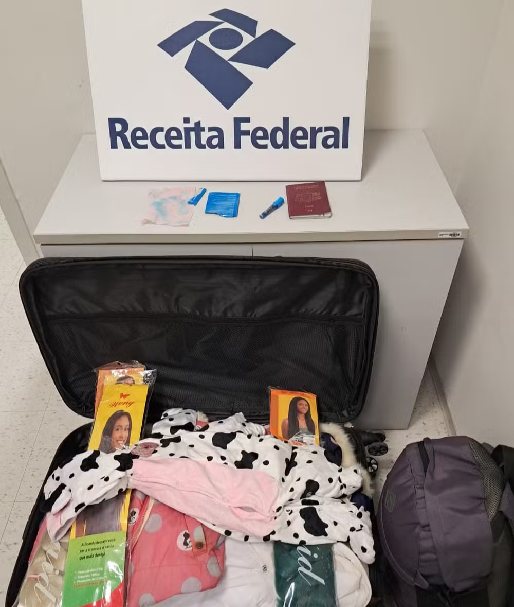 A prisão aconteceu durante uma fiscalização de rotina para viagens internacionais. Os agentes da Receita Federal suspeitaram da bagagem do passageiro, que tinha, além das roupas, muitas fantasias infantis.