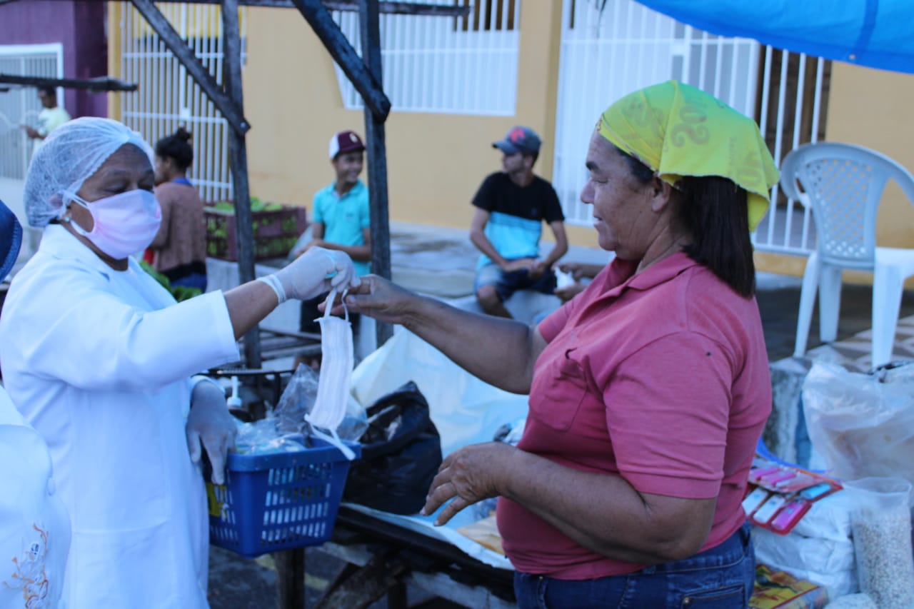 Como nas edições anteriores, a equipe de saúde distribuiu máscaras e higienizou as mãos de quem estava na feira com álcool em gel. Eles também aproveitam o momento de interação para repassar informações sobre a doença.