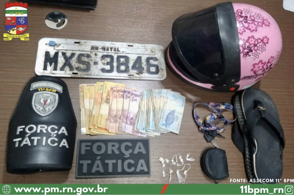 Força Tática apreende drogas, dinheiro fracionado e recupera moto roubada em Macaíba