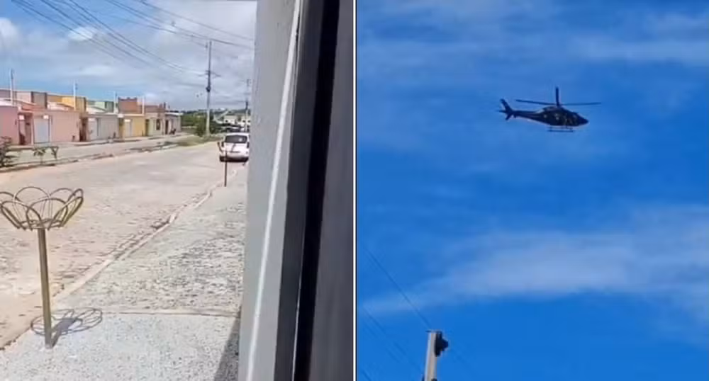 Vídeos compartilhados por moradores de Extremoz, na Grande Natal, mostram um grande tiroteio envolvendo forças policiais e criminosos entre o fim da manhã e início da tarde deste sábado (26).