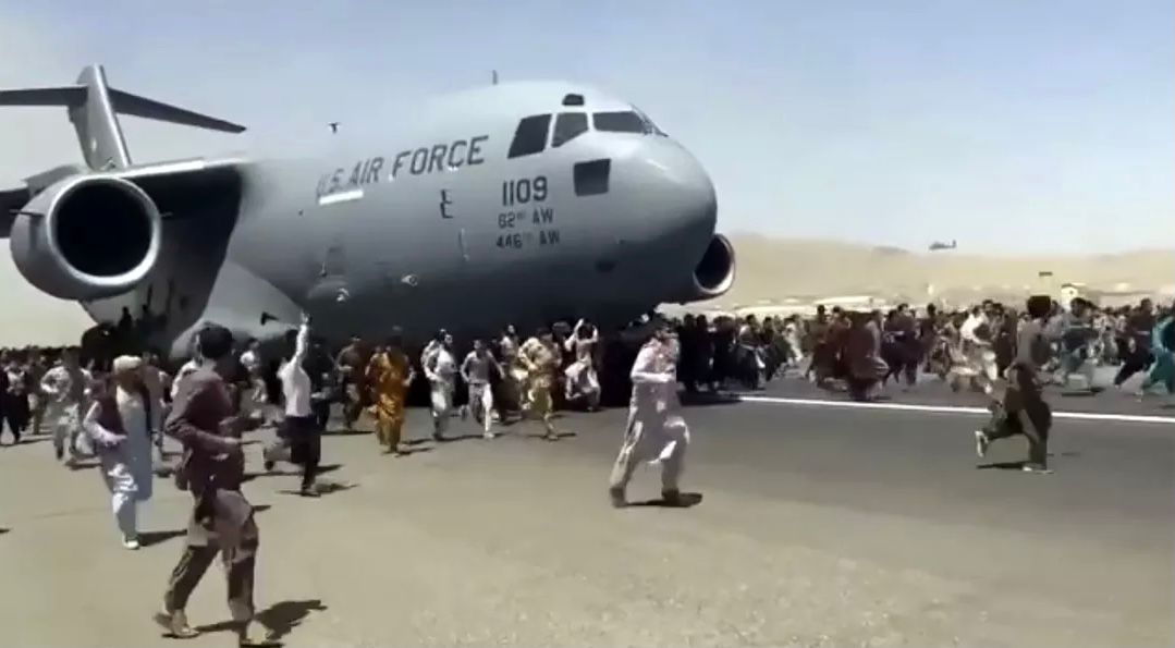 A Força Aérea analisará todos os vídeos que circulam nas redes sociais do avião de transporte C-17 com pessoas tentando se agarrar a suas asas ou rodas. Outro vídeo mostrou o mesmo avião voando sobre Cabul e o que parecia ser duas pessoas caindo.
