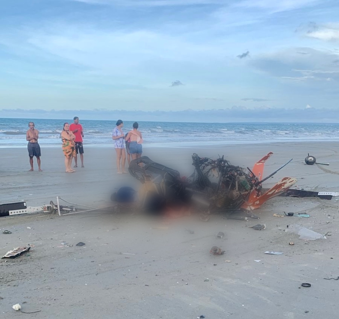Girocóptero cai na Praia de Areias Alvas, no litoral do RN, e deixa duas vítimas fatais