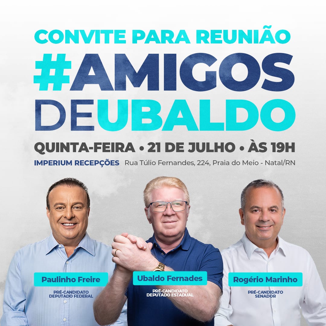 Na quinta-feira, 21/07, o vereador Herberth Sena (PSDB) e o deputado estadual Ubaldo Fernandes (PSDB) reúnem amigos em evento político de apoio à reeleição do parlamentar para a Assembleia Legislativa, além das pré-candidaturas do presidente da Câmara de Natal, vereador Paulinho Freire (UB), para a Câmara Federal, e do ex-ministro Rogério Marinho (PL) ao Senado. O encontro acontecerá a partir das 19h no Imperium Recepções, na Rua Túlio Fernandes, 224, Praia do Meio, em Natal.