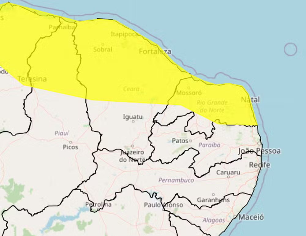 O Instituto Nacional de Meteorologia (Inmet) emitiu um alerta de chuvas intensas para 116 cidades do Rio Grande do Norte, incluindo a capital Natal. O alerta vale até 10h desta sexta-feira (4).