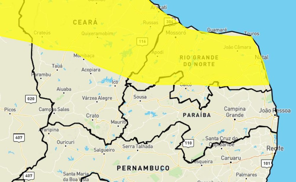 O Instituto Nacional de Meteorologia (Inmet) emitiu um alerta de chuvas intensas para Natal, Mossoró e outras 144 cidades do Rio Grande do Norte. O aviso é válido até 10h de sábado (7).