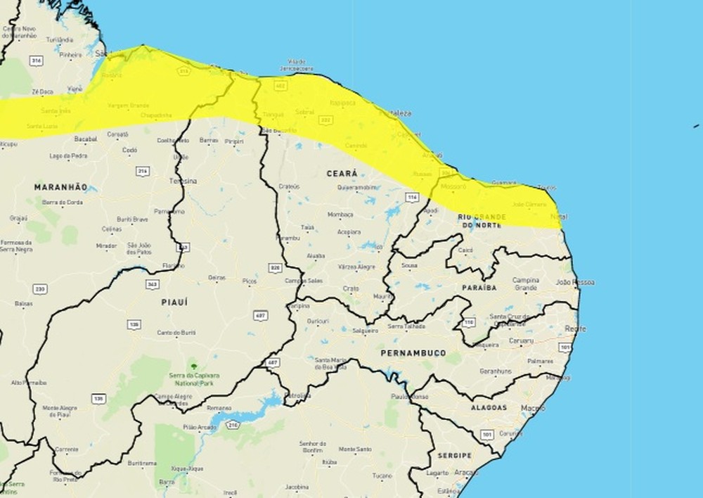Além do Rio Grande do Norte, essa chuva também atinge regiões do Ceará, Piauí, Maranhão, Pará, Amapá, Amazonas, Roraima e Acre.