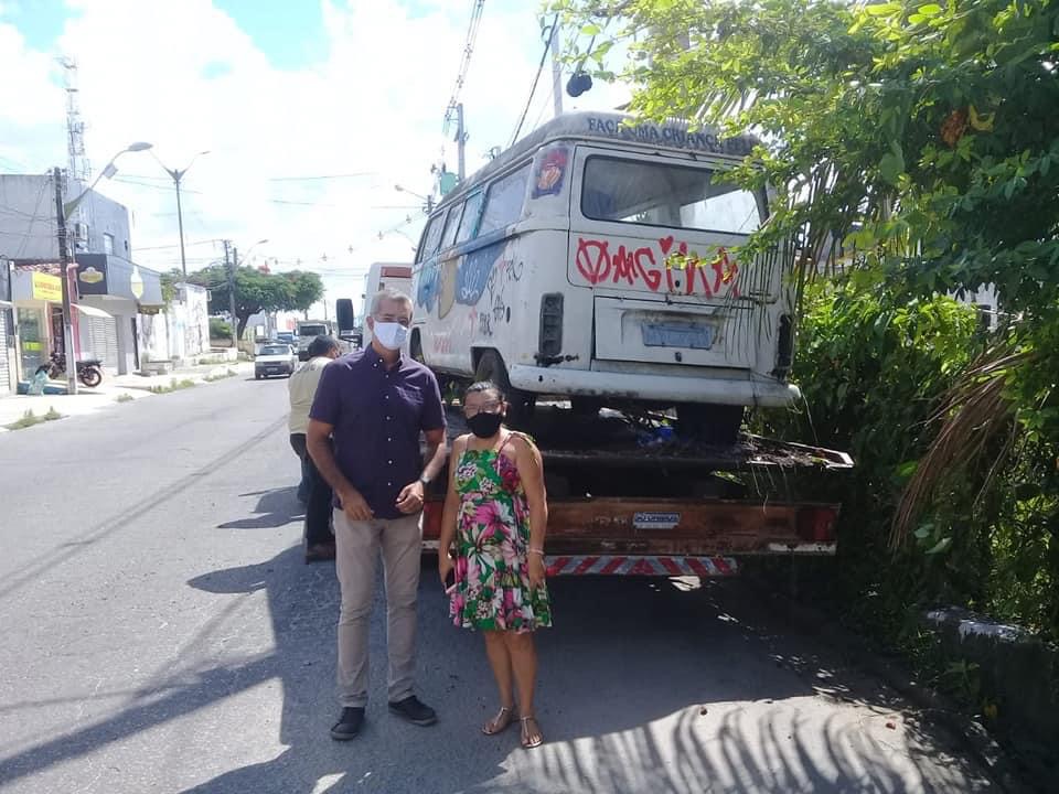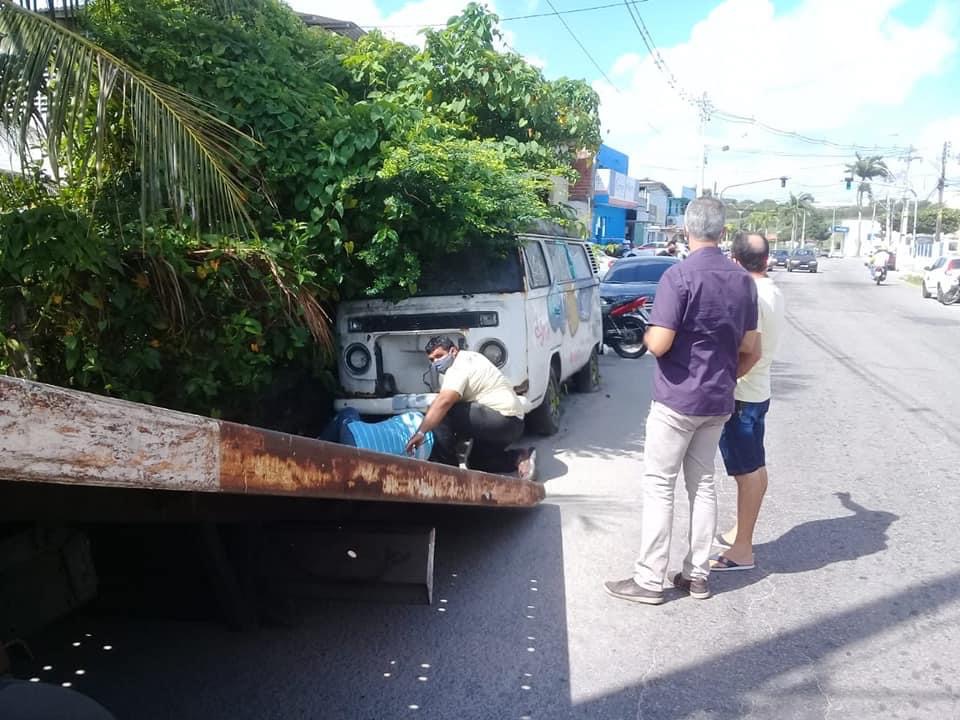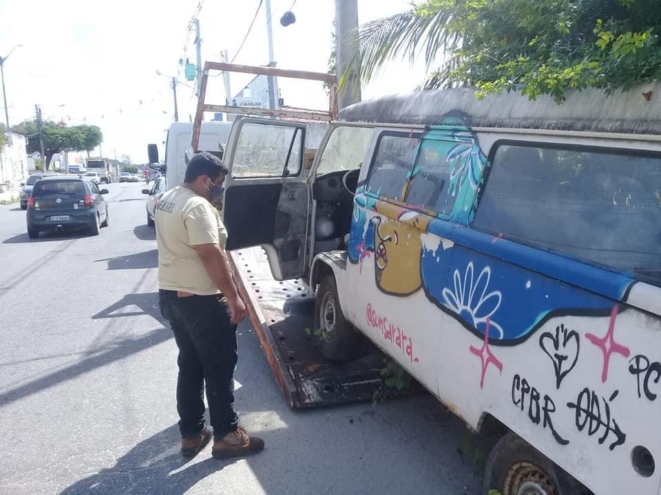 Uma Kombi que estava há quase três anos em frente a Auto Escola Macaíba, no centro da cidade, foi retirada hoje (12) pela secretaria de Trânsito e Transporte do município.