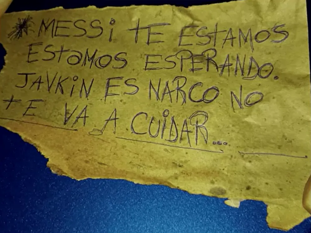“Messi estamos esperando por você. Javkin é um narcotraficante, ele não vai te proteger”, diz a mensagem.