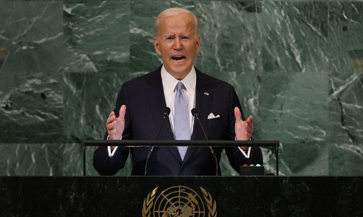 Discursando na Assembleia Geral das Nações Unidas em Nova York, Biden criticou o presidente russo, Vladimir Putin, por iniciar uma guerra não provocada que cerca de 40 membros da ONU estão ajudando a Ucrânia a combater com financiamento e armas.