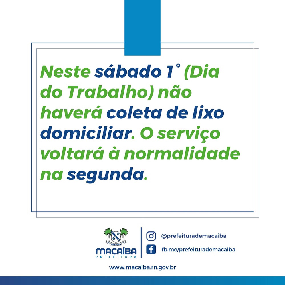 Macaíba Não haverá coleta de lixo domiciliar neste sábado (1) devido ao feriado 30/04/2021 Administrador Spread the love