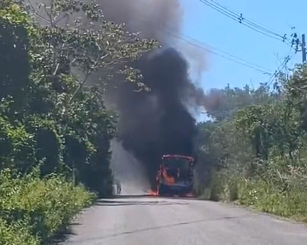 Um ônibus pegou fogo, na manhã desta segunda-feira (21) na estrada de Tabatinga, praia de Nísia Floresta, na Grande Natal. Segundo o Corpo de Bombeiros, ninguém ficou ferido.