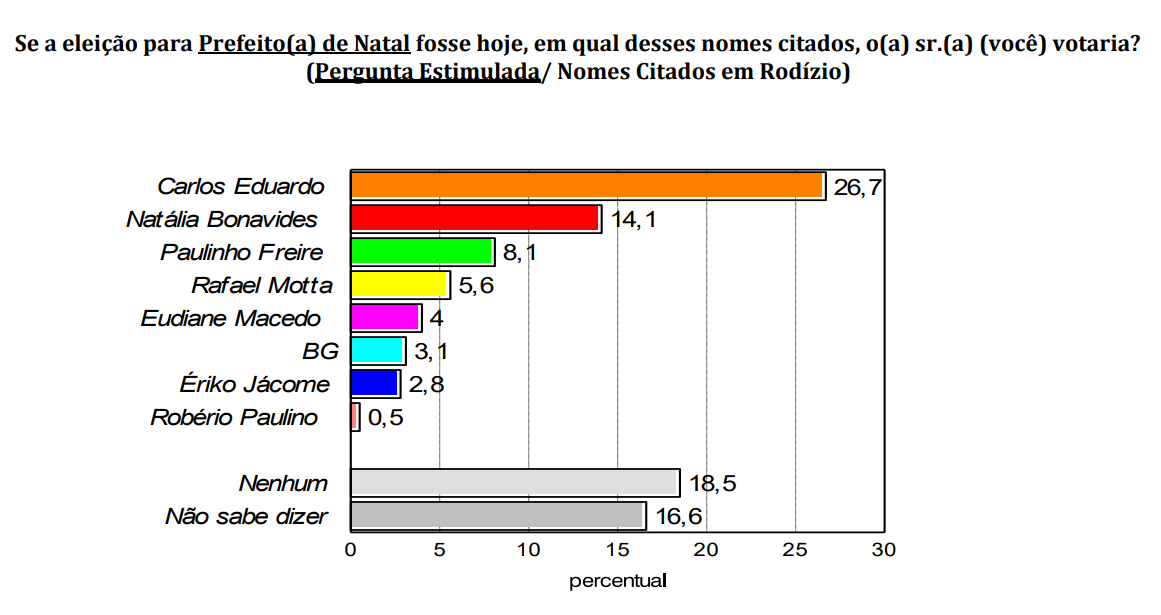 A pesquisa consult ouviu 1.000 pessoas, nas quatro regiões de Natal, entre os dias 26 e 29 de abril. Tem margem de erro de 3% e nível de confiança de 95%.