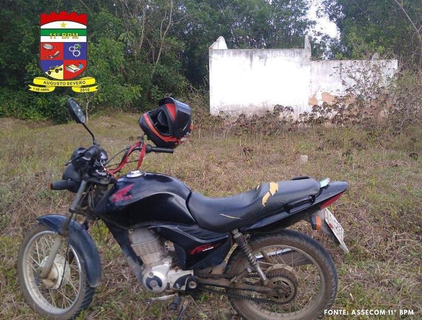 Quando visualizaram uma motocicleta abandonada, os PMs foram checar as condições e constataram que se tratava de um moto roubada no município de Parnamirim.