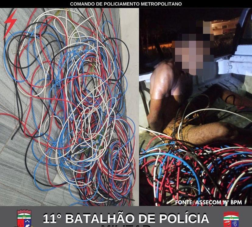 Polícia Militar detém homem suspeito de furtar cabos de rede elétrica em Macaíba
