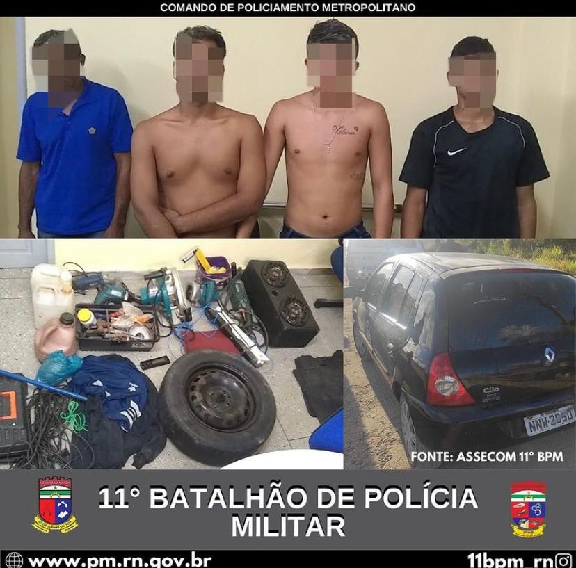 Realizaram a prisão de um homem e a apreensão de três adolescentes envolvidos em inúmeros crimes na região. Como também, os militares recuperaram dois veículos e diversos objetos roubados, na cidade de Macaíba.
