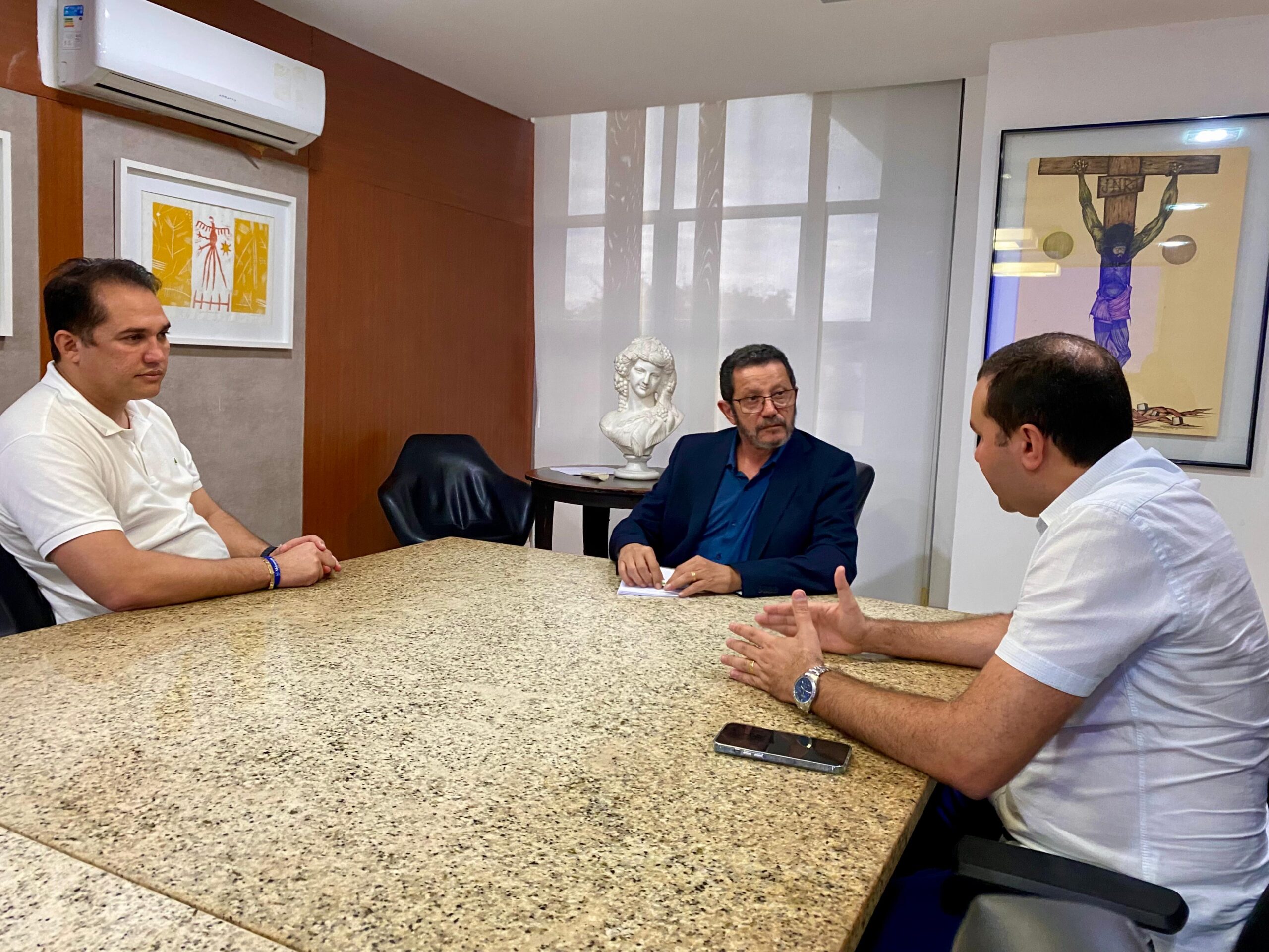 O prefeito Emídio Júnior e o deputado estadual Kléber Rodrigues estiveram reunidos, na tarde desta segunda-feira, com os secretários estaduais Adriano Gadelha (Gestão de Projetos Especiais) e Raimundo Alves (Gabinete Civil). Na pauta, a retomada da reforma do terminal rodoviário de Macaíba, um equipamento do Governo do Estado localizado no Centro, e agilidade na operação tapa-buracos na RN-160.