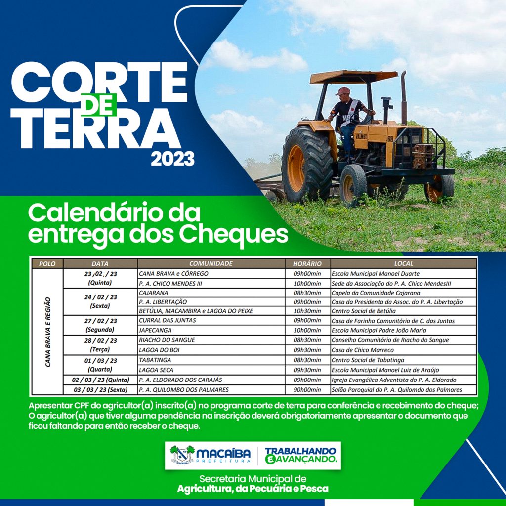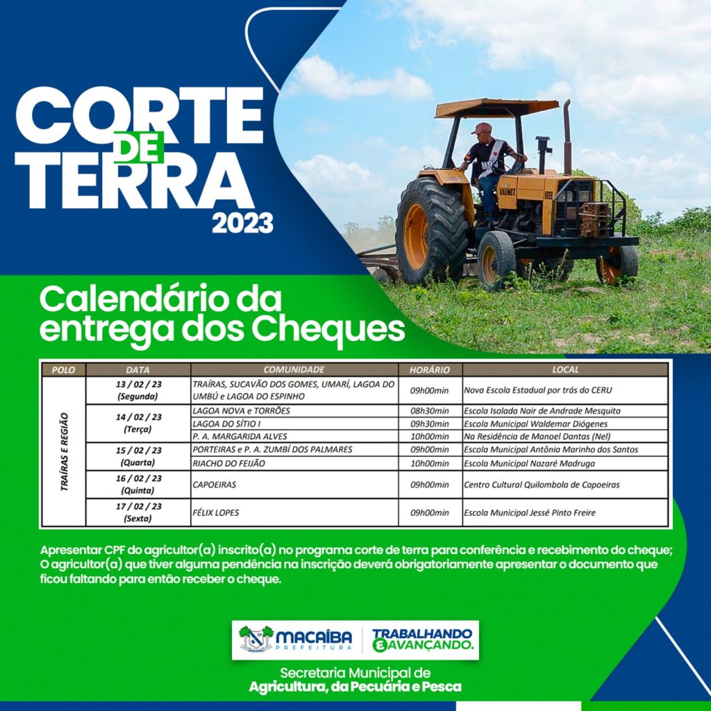Os moradores das comunidades rurais de Macaíba começaram a receber os cheques do Programa Corte de Terra 2023, nesta segunda-feira (13). A equipe da Secretaria Municipal de Agricultura (SEMAPE) realizou a entrega na Escola Estadual Prof. Ivonete Felipe de Souza, em Traíras.