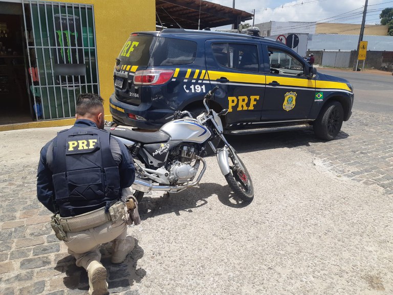 A Polícia Rodoviária Federal recuperou, na manhã desta segunda-feira (17), em Patu/RN, uma motocicleta NXR160 BROS de cor preta que foi roubada em 2018 e prendeu a condutora do veículo de 24 anos.