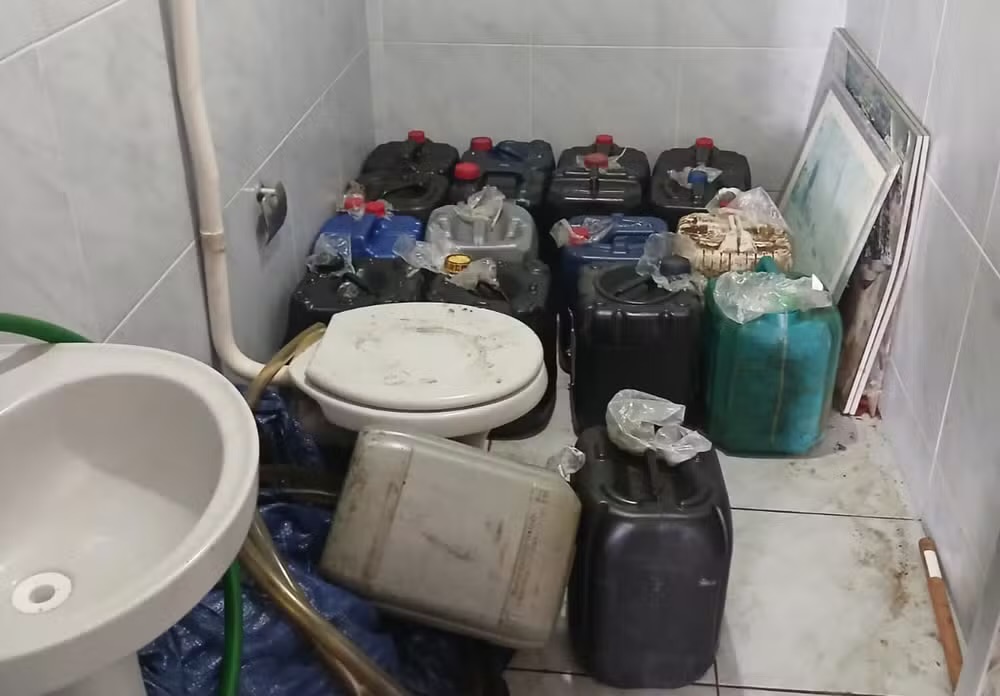 Segundo a Polícia Civil, o combustível é classificado como substância perigosa ao meio ambiente e estava acondicionado em vasilhames plásticos não certificados, o que configura crime ambiental.