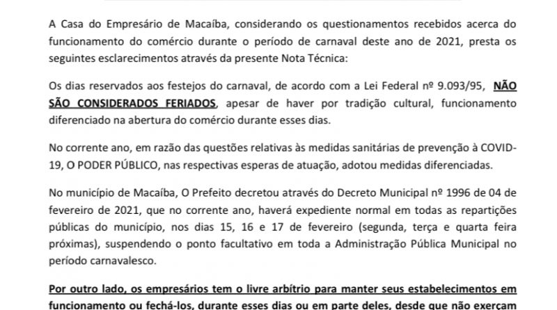 Read MoreA Prefeitura de Macaíba revogou o decreto Nº 1996/2021, do último dia 04 de fevereiro, e autorizou os pontos facultativos