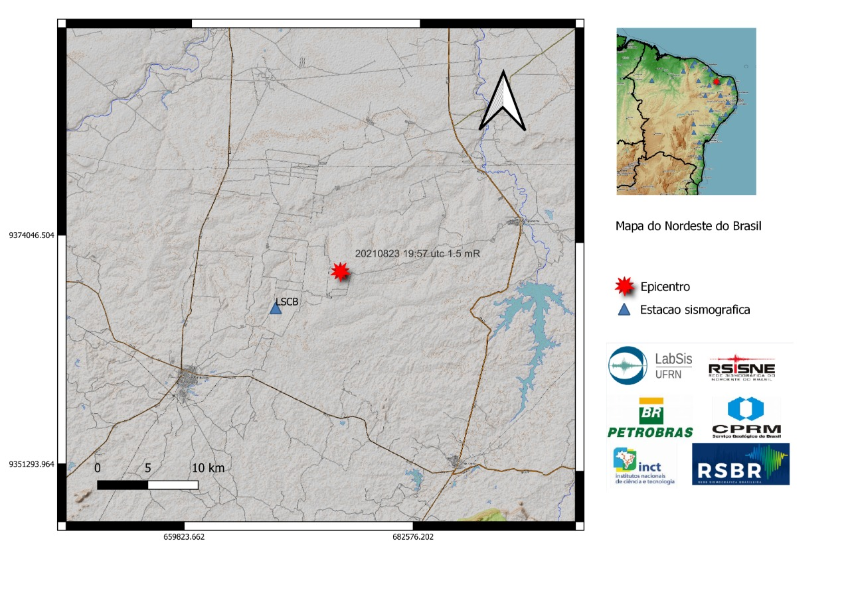 Localização epicentral simbolizada pela estrela vermelha no mapa. Foto: LabSis/UFRN