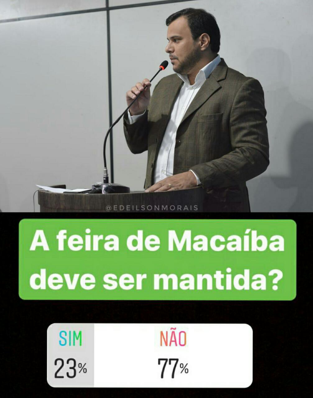 Através das suas redes sociais, Igor Targino realizou uma enquete para saber a opinião popular sobre manter ou não a feira livre em Macaíba durante essa pandemia do coronavírus.