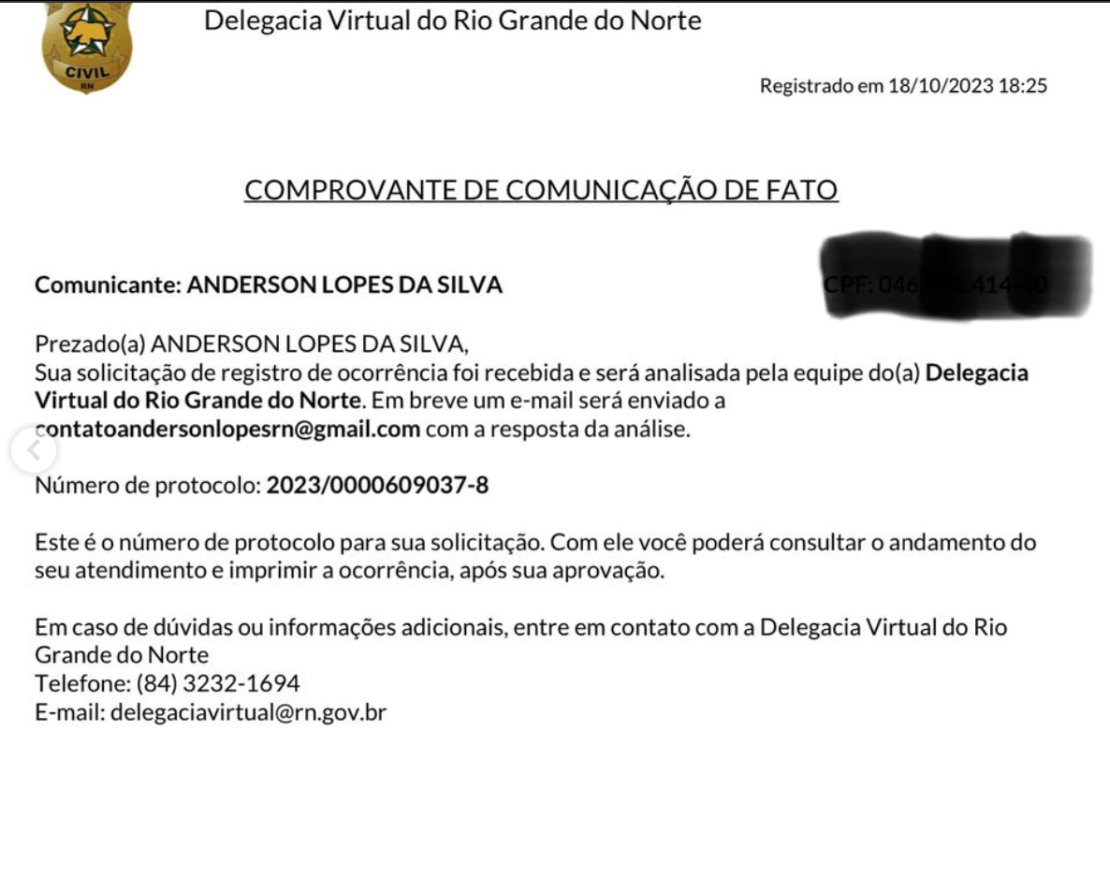 O vereador Anderson Lopes (PSDB) prestou queixa pela ameaça de morte que teria recebido dentro do plenário da Câmara Municipal de Natal na tarde desta quarta-feira pelo também vereador Professor Robério Paulino (PSOL). Ele publicou em rede social o extrato da queixa, feita via Delegacia Virtual.